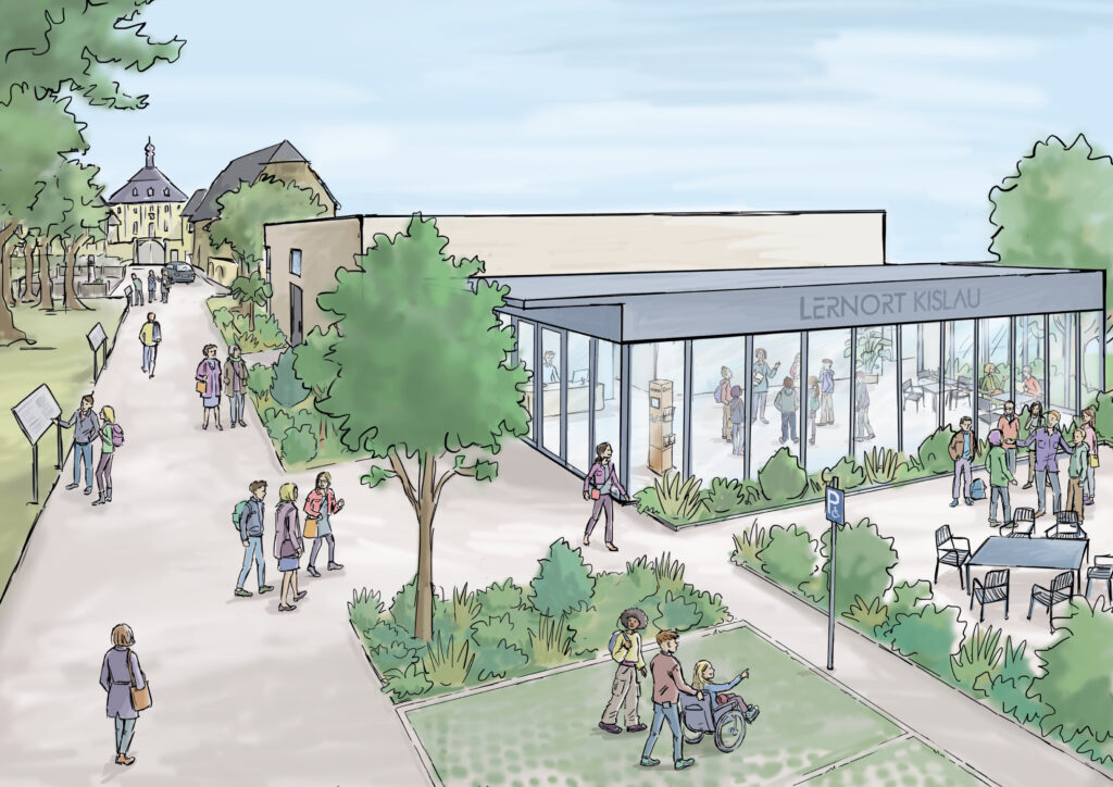 Aus didaktischer Perspektive wäre eine Unterbringung des Lernorts Kislau in einem historischen Bestandsgebäude außerhalb des Sicherheitsbereichs die beste Lösung. Das Land Baden-Württemberg hat dieser Option jedoch eine klare Absage erteilt. Um am historischen Ort Bildungsarbeit leisten zu können, verbleibt damit nur eine Möglichkeit: die Errichtung eines Neubaus vor den Toren der Schlossanlage. Das Land Baden-Württemberg hat uns dafür via Erbpacht ein Baugrundstück zur Verfügung gestellt.